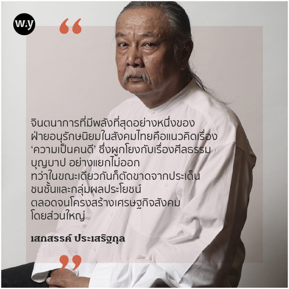 จินตนาการที่มีพลังที่สุดอย่างหนึ่งของฝ่ายอนุรักษนิยมในสังคมไทยคือแนวคิดเรื่อง ‘ความเป็นคนดี’ ซึ่งผูกโยงกับเรื่องศีลธรรม บุญบาป อย่างแยกไม่ออก ทว่าในขณะเดียวกันก็ตัดขาดจากประเด็นชนชั้นและกลุ่มผลประโยชน์ ตลอดจนโครงสร้างเศรษฐกิจสังคมโดยส่วนใหญ่