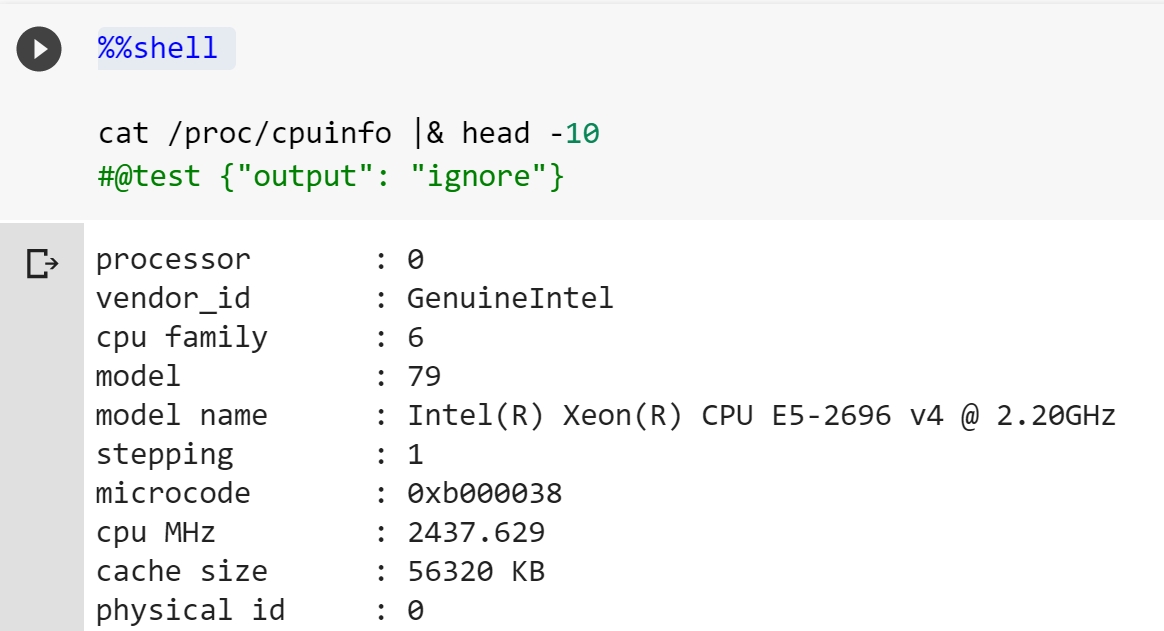 Shell magic is useful to view the current server environment specs. To improve the current server specs, you need to launch Google Cloud Platform (GCP) Virtual Machine (VM) and redirect the connection to Colab runtime (port forwarding).