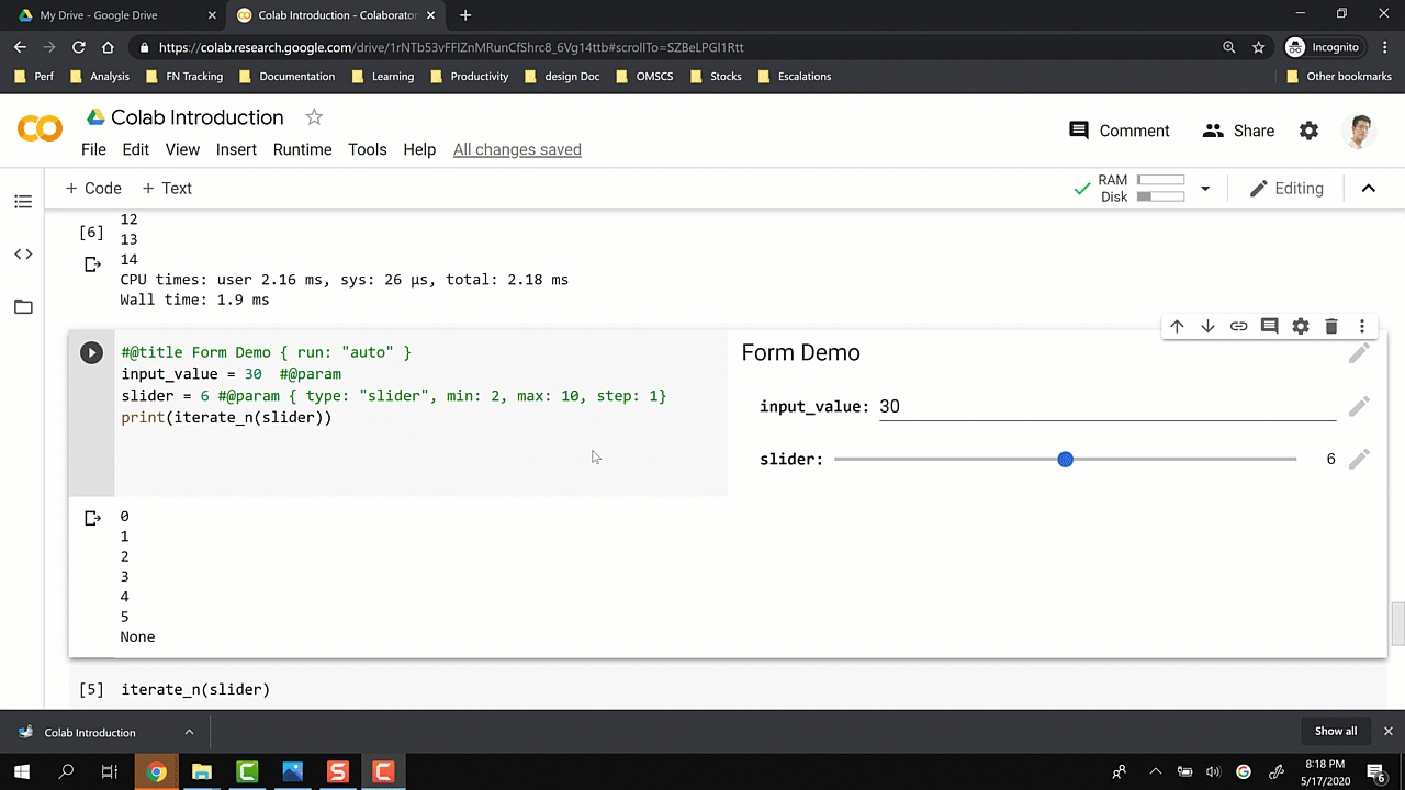 is intuitive. Just by adding #@param with the attribute, you can control your interactions. Google Colab will inject the values to your variables, then run the cell everytime you change its values.