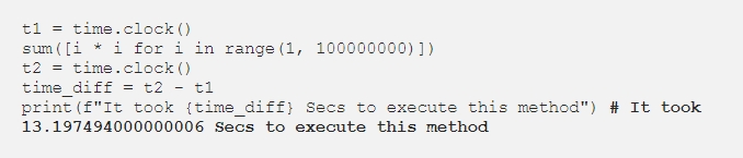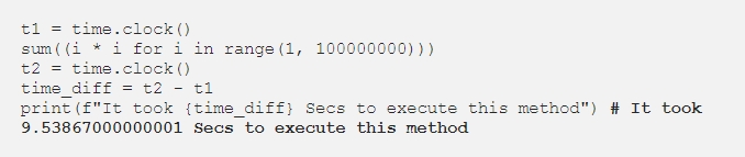 ในการบวกจำนวนที่เราต้องการเข้าไปเรื่อย ๆ เราควรตระหนักว่า วิธีนี้ดูจะเป็นไปได้ยากเนื่องจากต้องใช้เวลาในการคำนวณสูง เพราะเหตุนี้เอง Python Generators จึงถูกสร้างขึ้นมาเพื่อแก้ไขปัญหานี้ ด้วยการแทนที่ “[ ]” ด้วย “( )” เราก็จะเปลี่ยน List Comprehension เป็น Generator Expression แล้ว ตอนนี้เรามาคำนวณเวลากันใหม่: