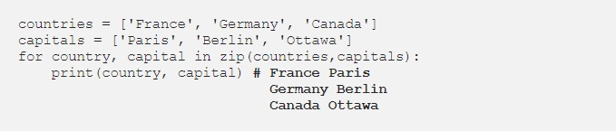 สมมติว่า คุณได้รับมอบหมายงานให้รวมหลาย ๆ Lists ที่มีความยาวเท่ากันเข้าด้วยกัน และ Print ผลลัพธ์ออกมา และการใช้ zip() ก็เป็นวิธีที่ดีกว่าที่จะได้ผลลัพธ์ที่ต้องการ ดังที่แสดงใน Code ด้านล่าง: