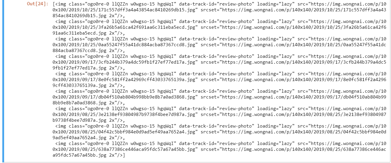 จากที่ดึงมาจะมี 9 img tag ดังปรากฏภาพ 9 ภาพในหน้าเว็บนั้น แล้วเราจะใช้เครื่องมือของ BeautifulSoup ในการสกัดเอาลิงค์ออกมานะครับ