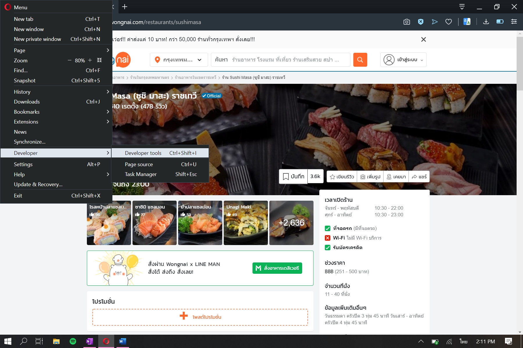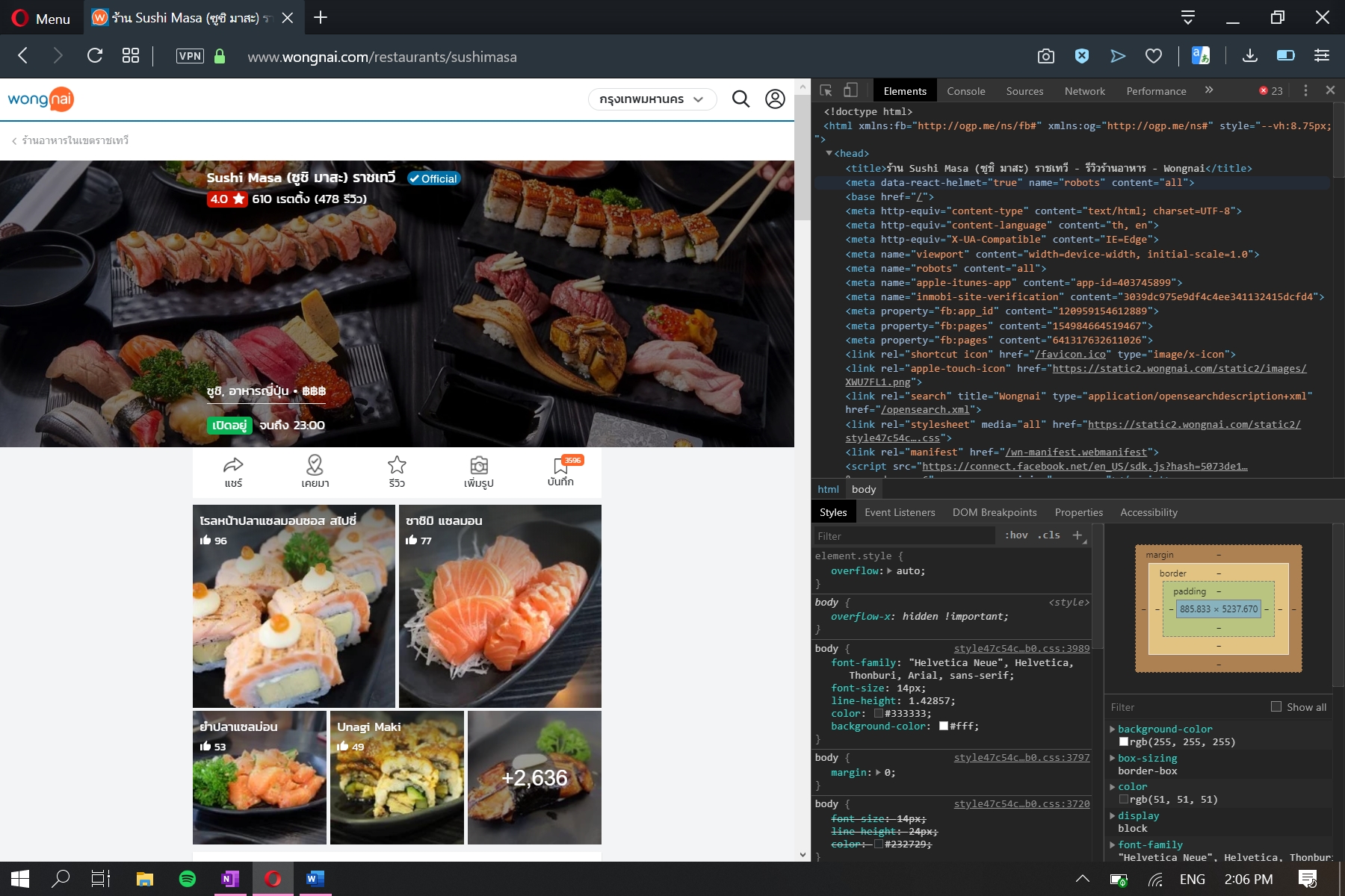 หลังจากได้ตรวจเช็คแล้วเรามาทำความรู้จักกับ dev-tools กันครับ โดย dev-tools สามารถทำให้เราดูว่ามีอะไรบ้างอยุ่ในเว็บนั้นและคัดกรองว่าจะนำอะไรมาใช้ได้บ้างและต้องทำอย่างไรถึงจะนำออกมาใช้ได้ โดยวิธีใช้เครื่องมือนี้ไม่จำเป็นต้องติดตั้งโปรแกรม เพราะมีอยู่ใน Browser ที่ทุกท่านใช้อยุ่แล้ว อย่างผมใช้ Opera หรือ Chrome สามารถทำได้โดยกด Ctrl + Shift + I หรือ กด F12 หรือ Right click แล้วเลือก Inspect หรือจะกดที่มุมซ้ายบนได้เลยครับ