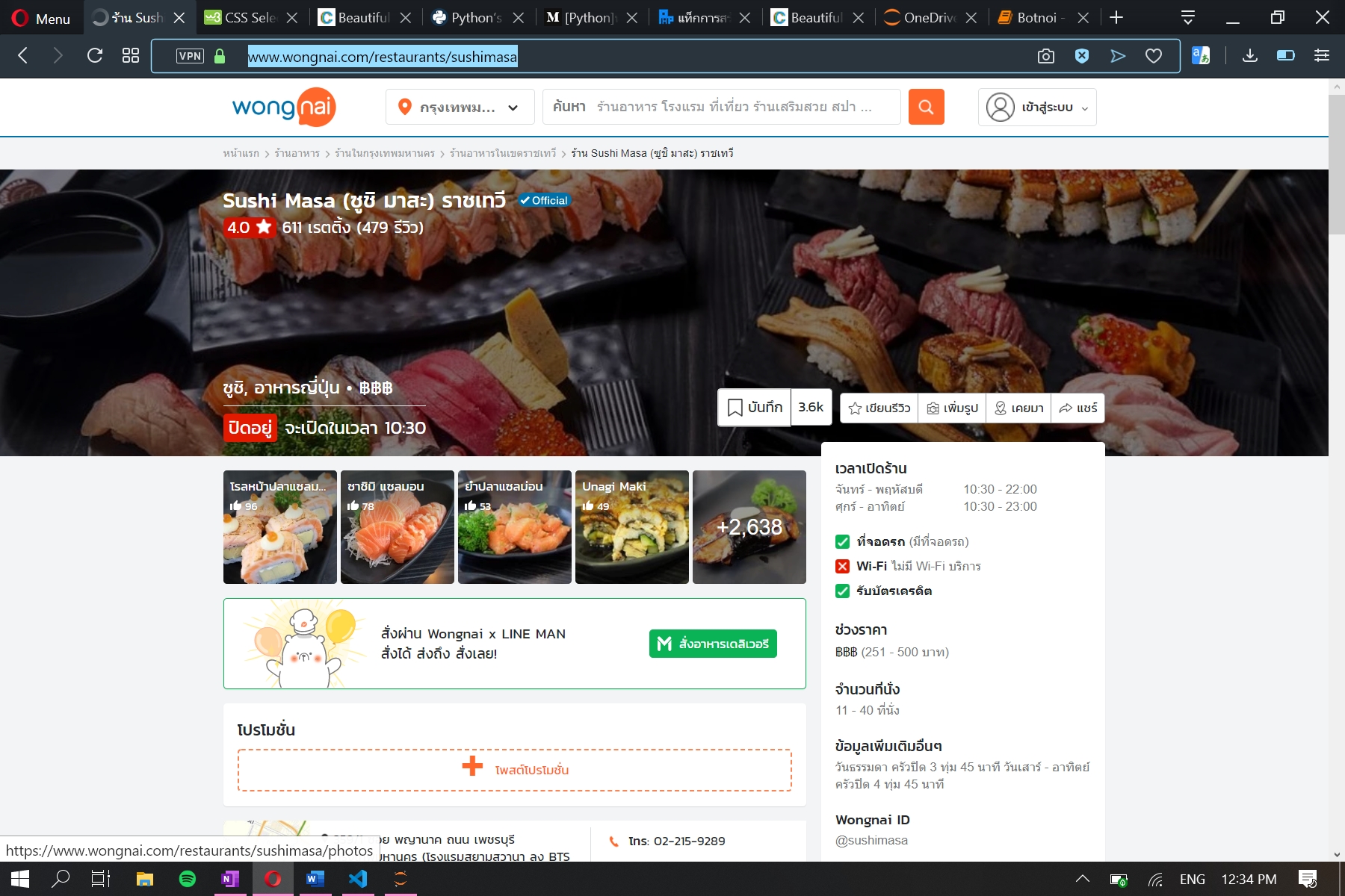 r = requests.get(‘https://www.wongnai.com/restaurants/sushimasa’)