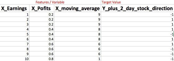 Now, our goal is to train a model where we could give it a new unseen feature set and have it predict the price direction for some future target date.