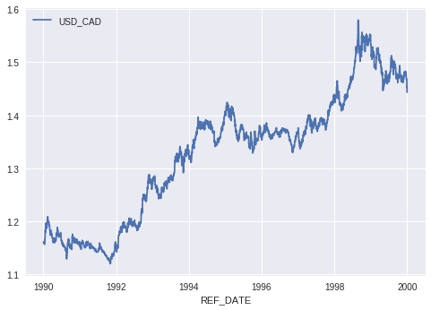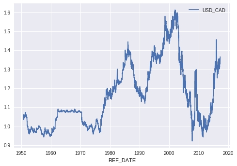 Our asset for this toy exercise is the currency pair USD/CAD. We can obtain the daily historical data for the asset going back to the 1950s from Open Data Canada right here.