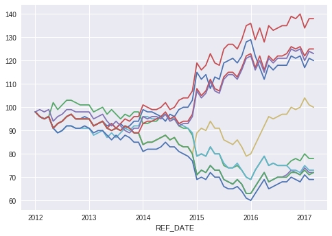 It’s a pretty even situation, with plenty of positive and negative correlations showing up in the data. This is a good sign for trying to predict USD_CAD movement during this period. In truth, the direction of the correlations is not as critical as the strength, and how independent the signals are from each other. Ultimately the key factor is how much money we make. The idea here is to hold CAD and USD, and switch between them monthly according to when our model predicts we should.