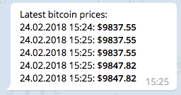 Based on the current price we will decide if we want to send an emergency notification. For our regular Telegram updates we will also append the current price and date to a bitcoin_history