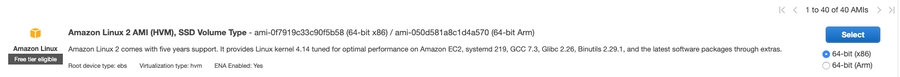 For the purpose of this tutorial, we simply want to select the single machine that is free tier eligible. It is characterized by a small green label that looks like this: