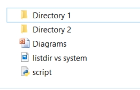 💡 Tip: You can visually identify if an element of the list represents a file or a directory by seeing if it has an extension (type) after its name. For example: Diagrams.ppt