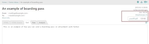 Remember about the file size: sending files over 20MB is a bad practice. In transactional emails, the PDF files are the most frequently used: we usually get receipts, tickets, boarding passes, order confirmations, etc. So let’s review how to send a boarding pass as a PDF file.