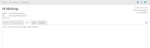 Once you get the Sent result in Shell, you should see your message in your Mailtrap inbox: