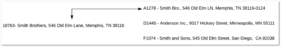 With a small sample set and our intuition, it looks like account 18763 is the same as account number A1278. We know that Brothers and Bro as well as Lane and LN are equivalent so this process is relatively easy for a person. However, trying to program logic to handle this is a challenge.