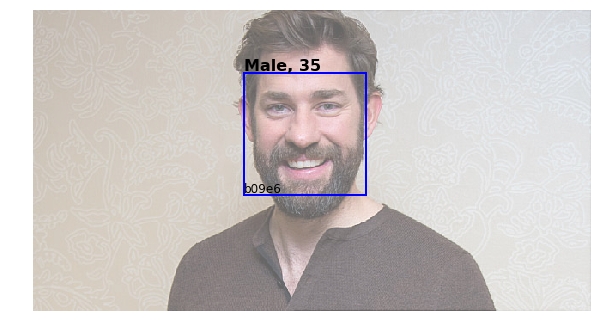 Since we have a picture of a young Jim, let’s see if it’s the same Jim (aka John Krasinski) with a beard. We can annotate this new image and inspect the json results to get the faceID of the second image: