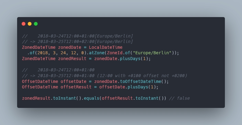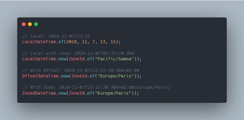 The new Java 8 Date/Time is considered one of the most understandable and clear APIs that helps you deal with date. I’m not going to explain how it works here but let’s review some interesting points.