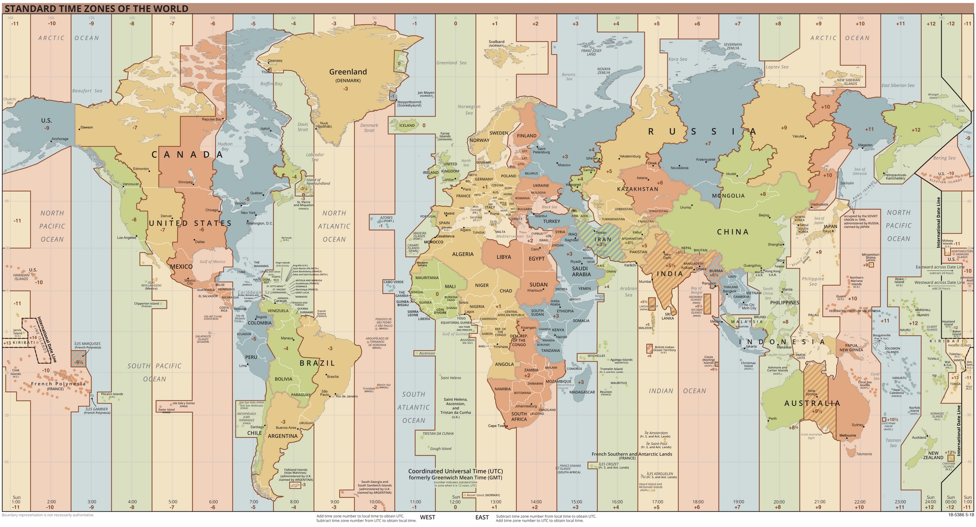 To make sure the time is coordinated with the sun for everyone, it’s necessary to shift from global time according to your location. As a result, the globe gets split into time zones and each gets an offset. This offset is a number of minutes to add to the global time to get your time zone time. It can be either positive or negative.Standard world time zones — Illustration by Hellerick from Wikimedia Commons